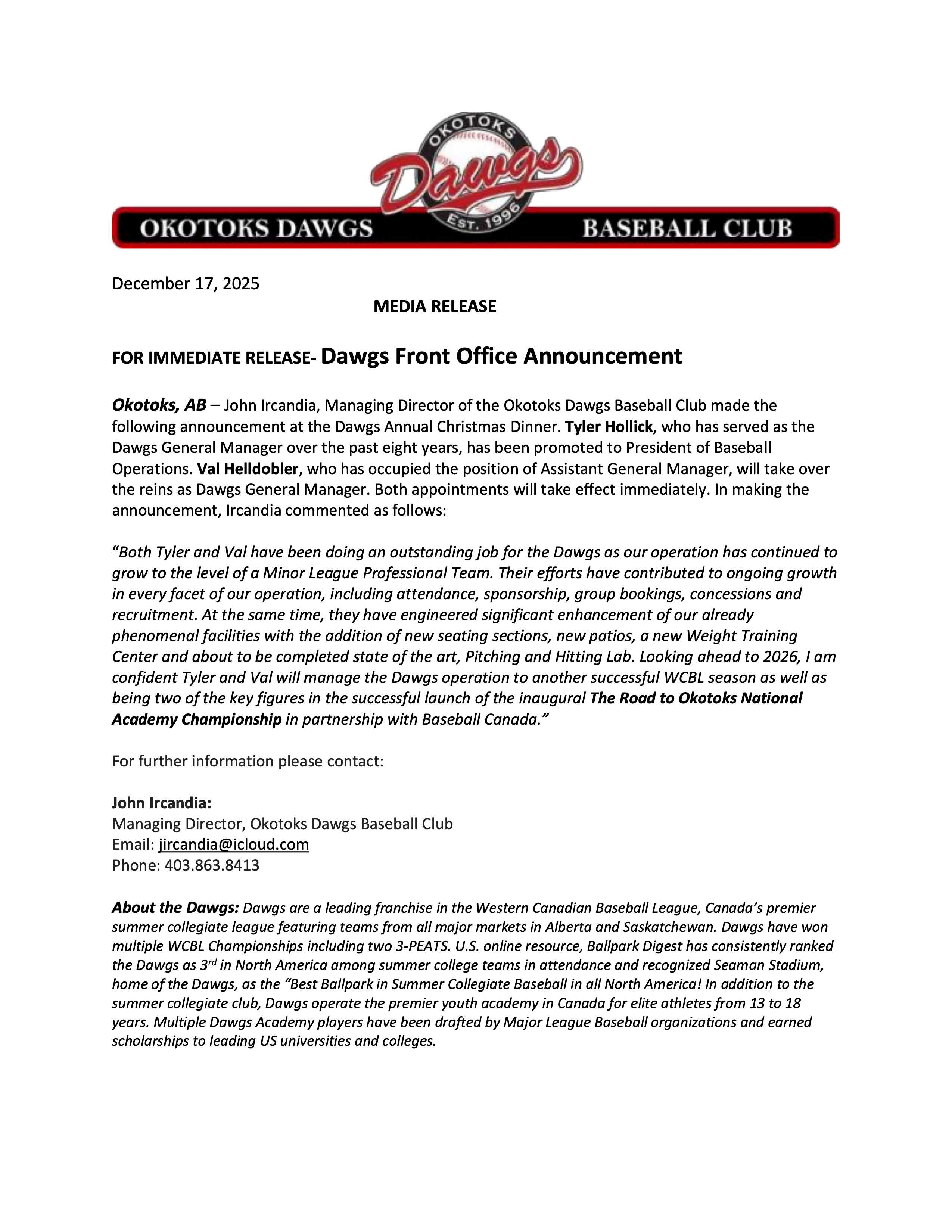 - Dawgs Sign Fech, Manuel & Stacher for 2026The Okotoks Dawgs continue to build momentum heading into the 2026 season with…