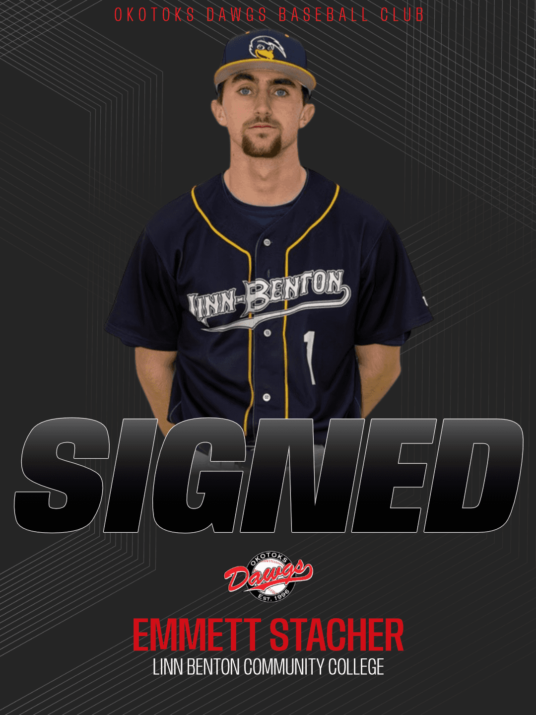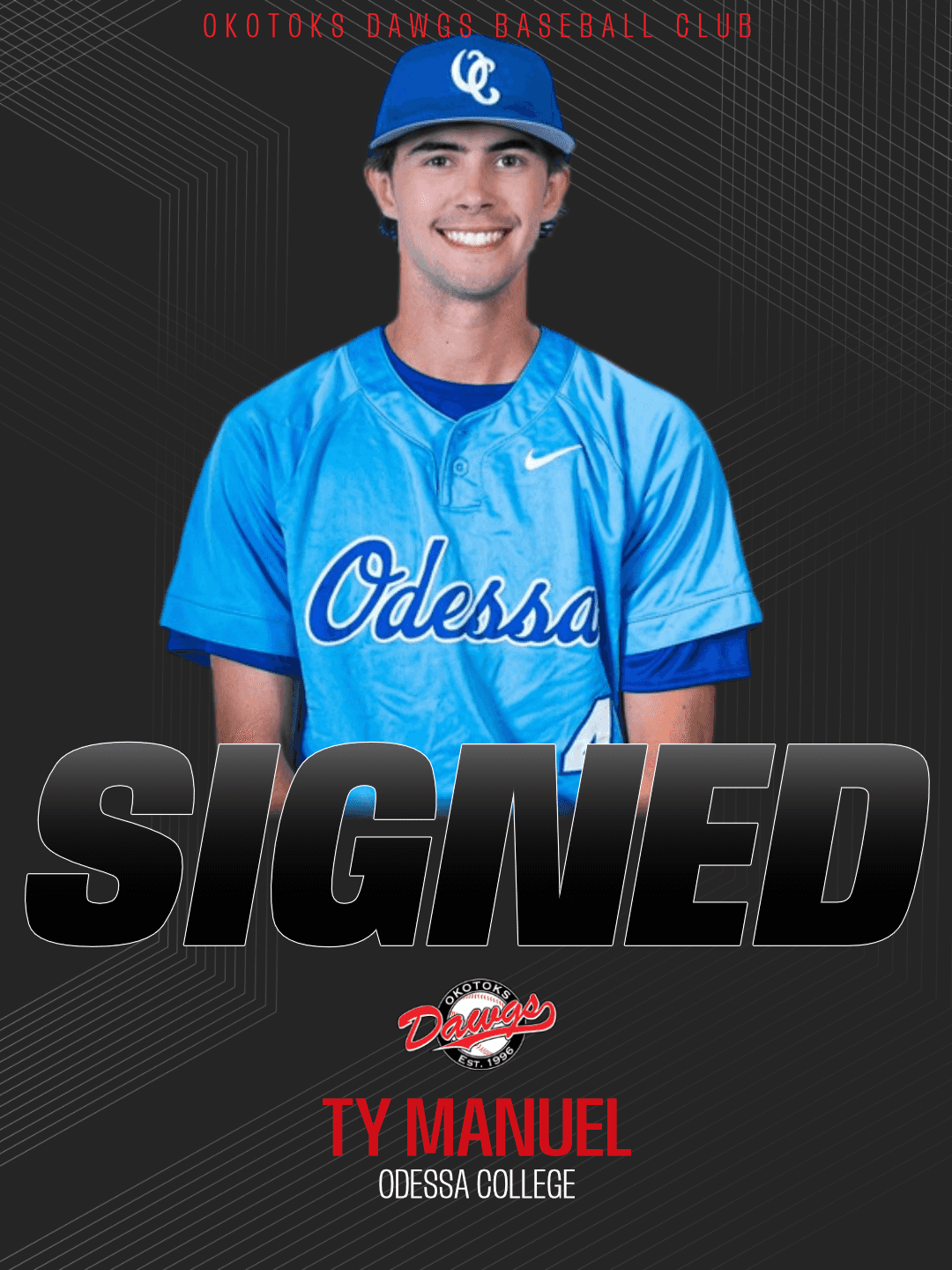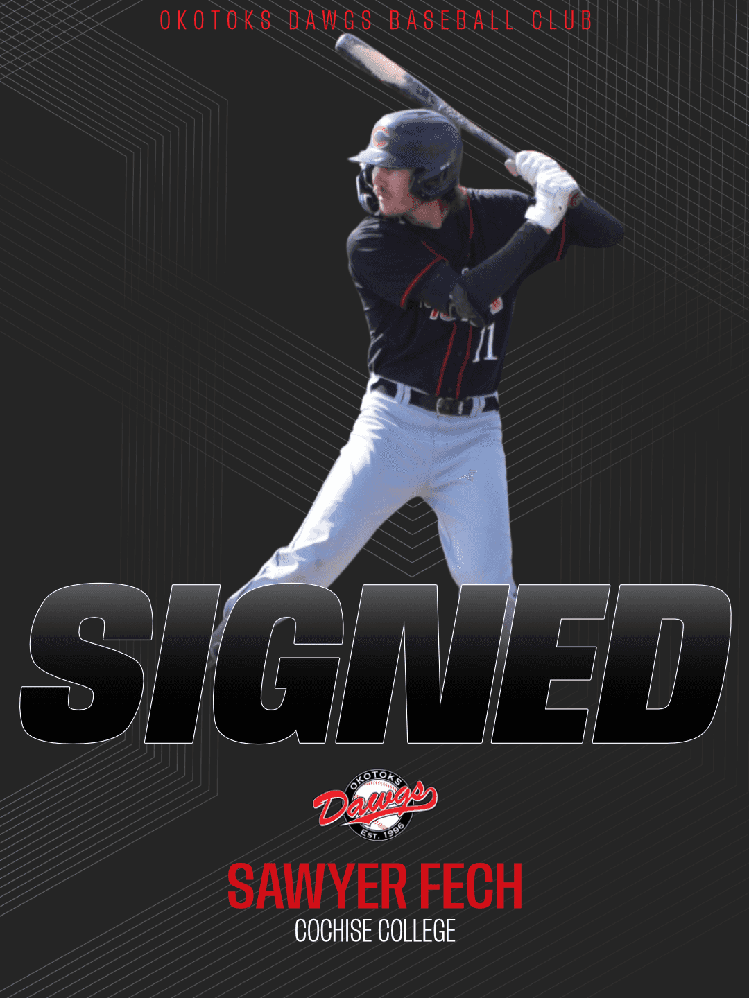 The Okotoks Dawgs continue to build momentum heading into the 2026 season with the signing of three new players: infielder Sawyer Fech from Cochise College, left-handed pitcher Ty Manuel from Odessa College, and right-handed pitcher Emmett Stacher from Linn-Benton Community College.